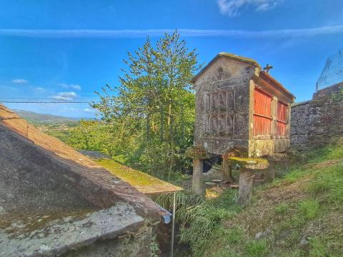 Casa de piedra con tejado a dos aguas, cuenta con finca cerrada de 550m2 aproximadamente, en la que destaca un típico hórreo gallego, bien de valor patrimonial y con protección.