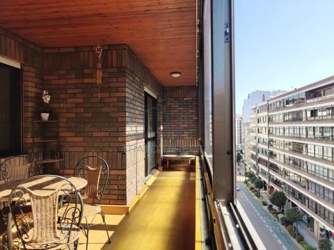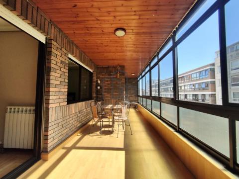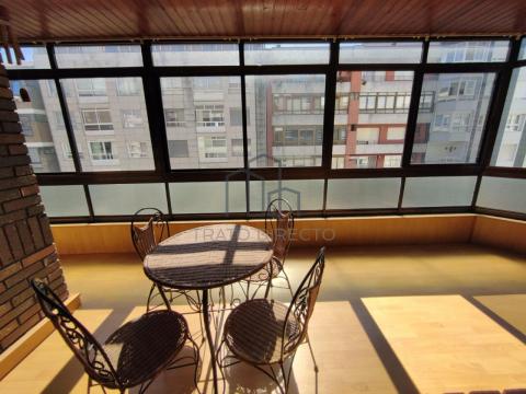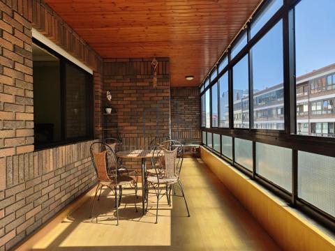 Uno de nuestros espacios favoritos es gran terraza orientada a la avenida, hoy un espacio cerrado a modo de galería, soleada toda la tarde y que cuenta con acceso tanto desde el salón como desde la habitación principal. Se trata de un espacio lo suficientemente amplio como para tener una mesa con sillas para disfrutar leyendo, escuchar música o tomando un café. Un espacio que además, mejora la eficiencia energética de la casa gracias al calor que acumula los días de sol e invierno.
